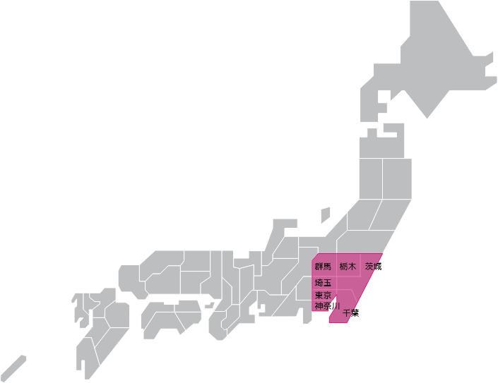 首都圏:1都6県(東京・神奈川・埼玉・千葉・茨城・栃木・群馬)
