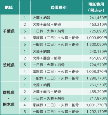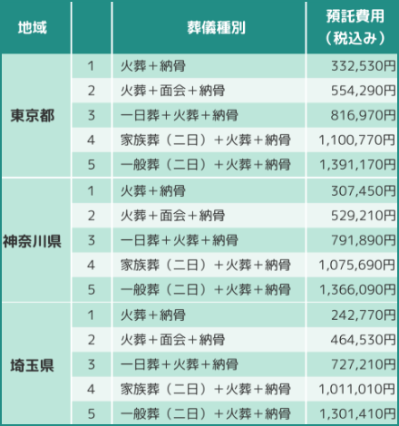- 火葬費用は地域ごとに異なります。居住地で火葬を行なうことを想定し預託頂きます。